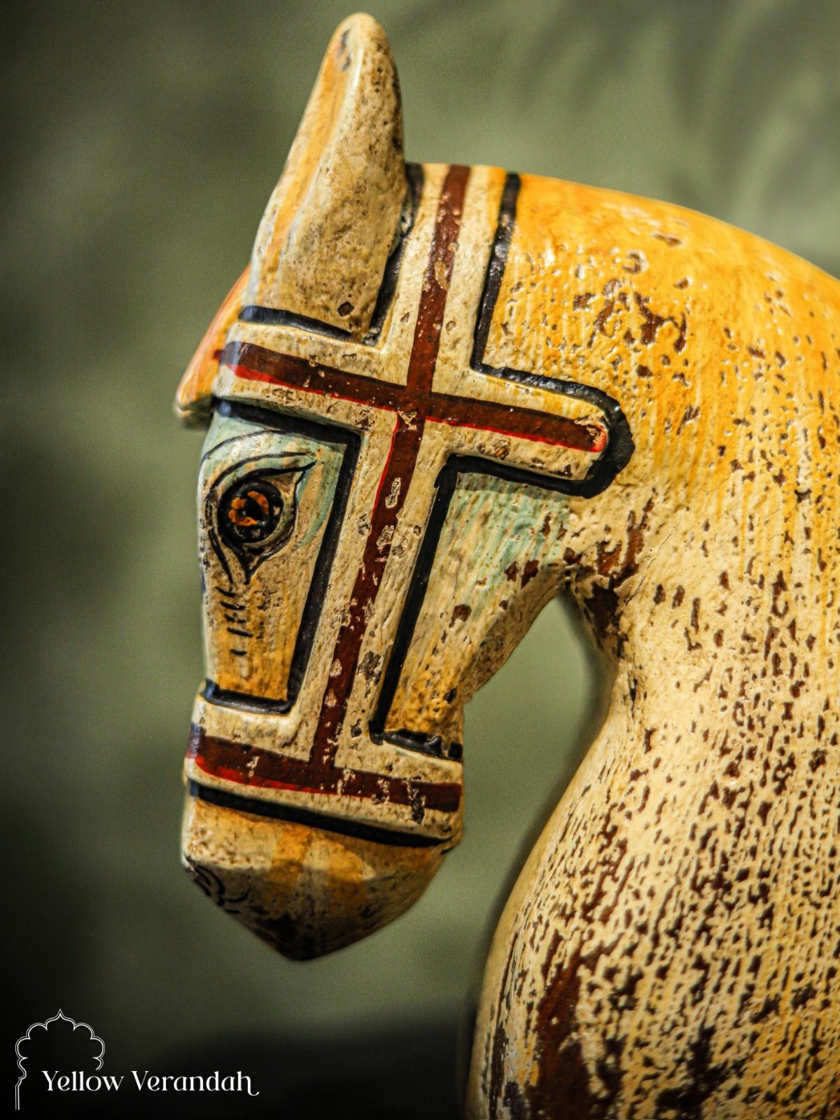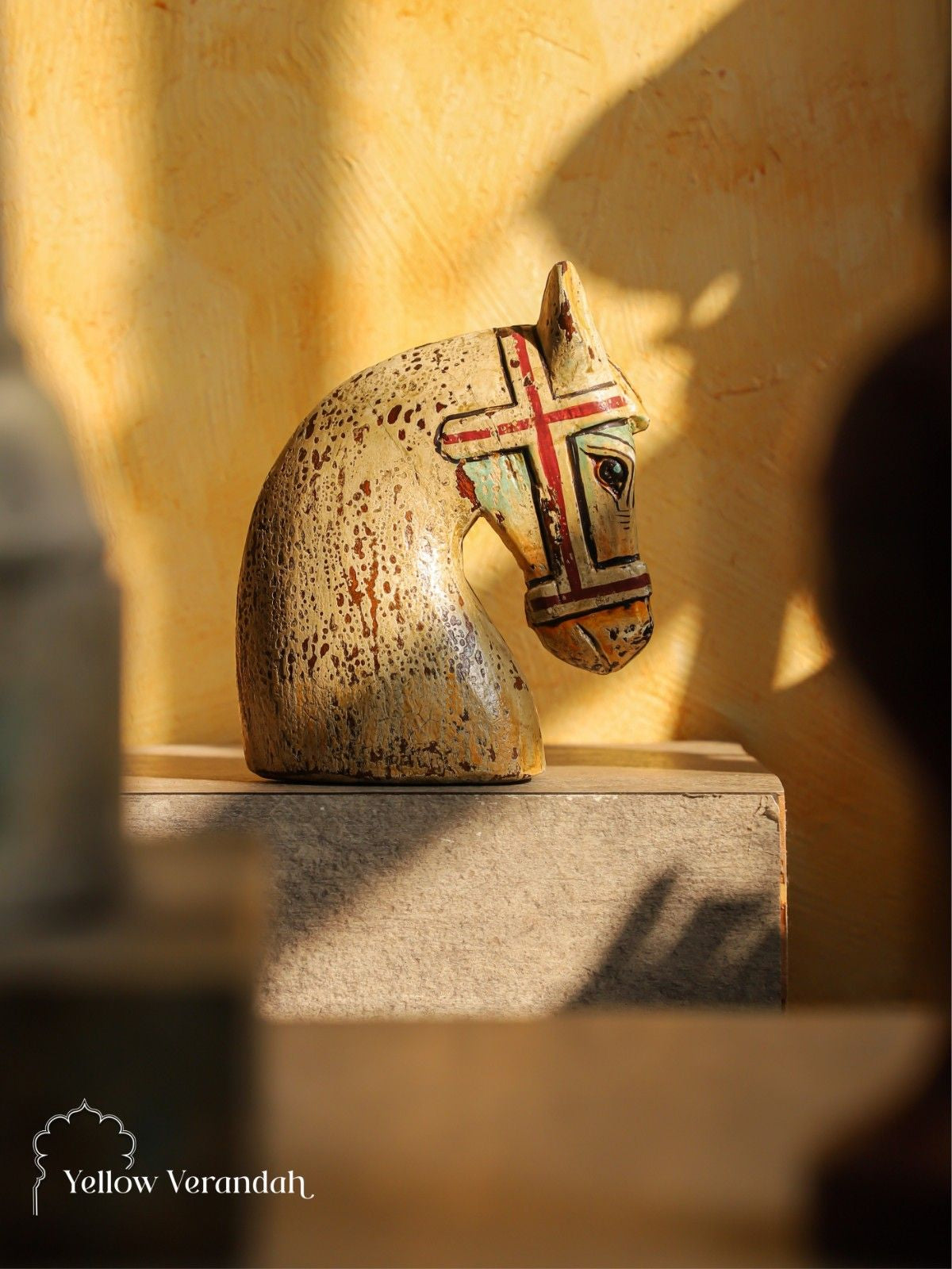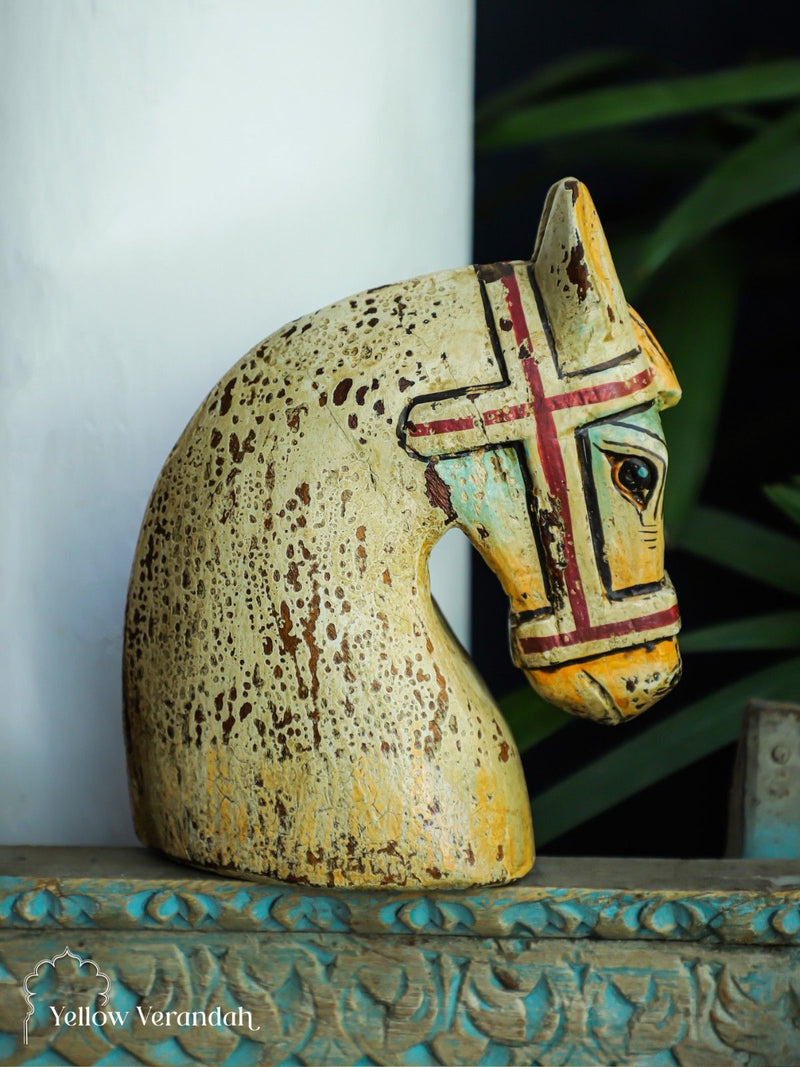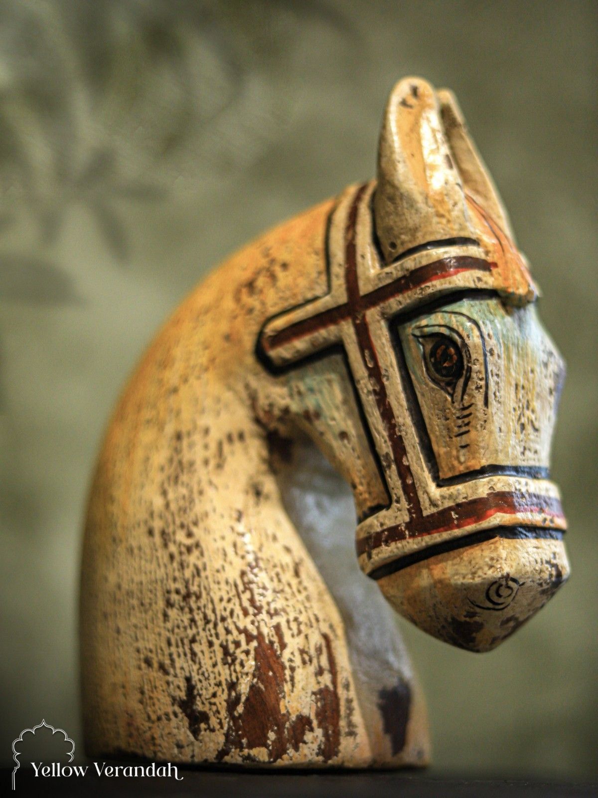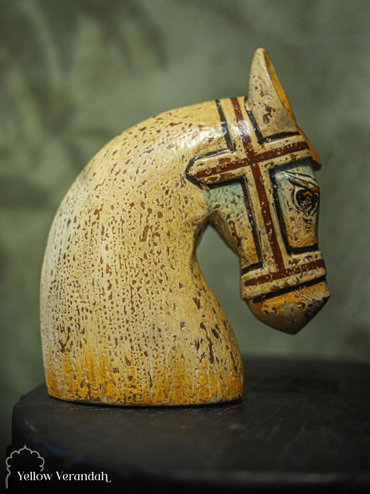 This Old Wooden Horse Head will add charming aesthetics to your table or console setup. This timeless collection is rare and reminds royalty of Indian courtyard architecture.