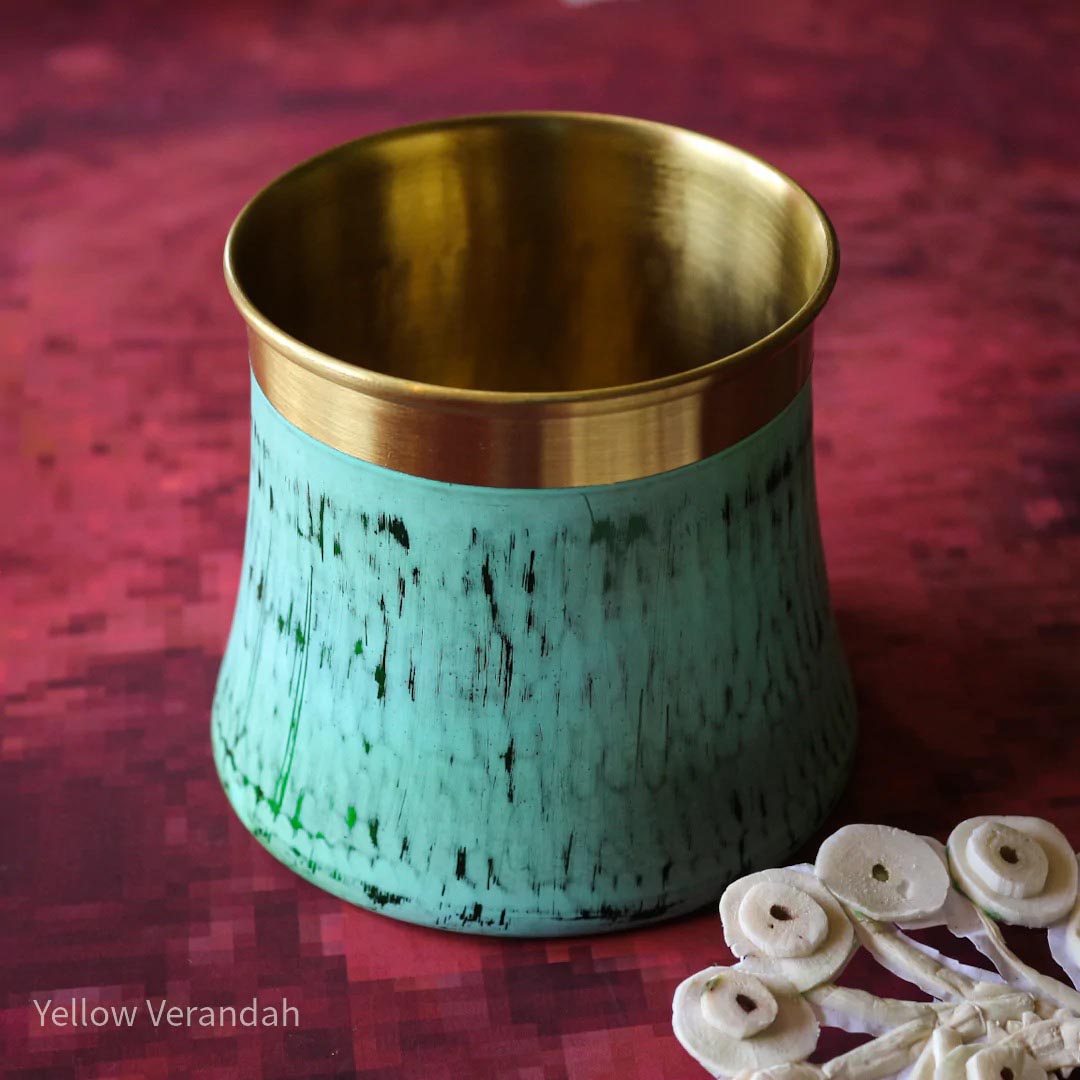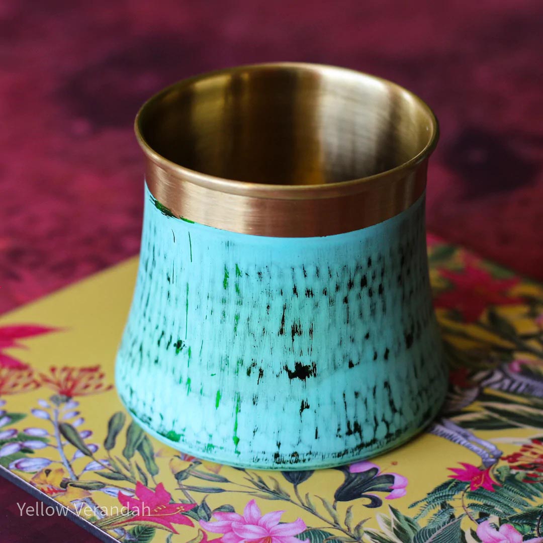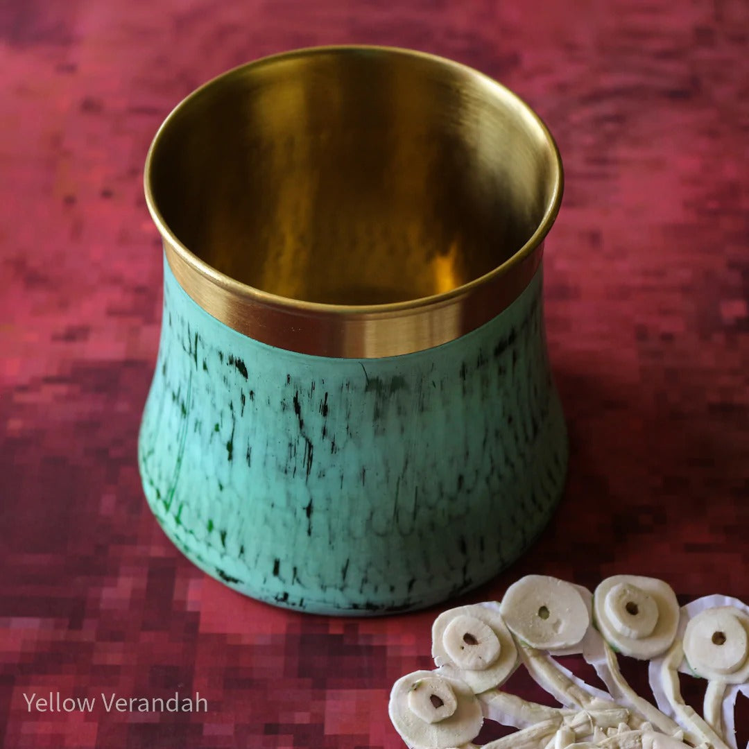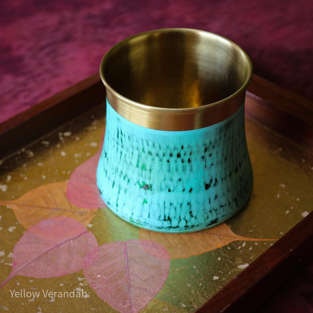 Inspired by radical beauty of Zamindari aristocracy and Mughal Patina finished servingware, these Pure Brass Patina Sharbat Glasses are Created beyond utility. The shape and fine handcrafted Patina finish will remind you our rich culinary & culture !!!