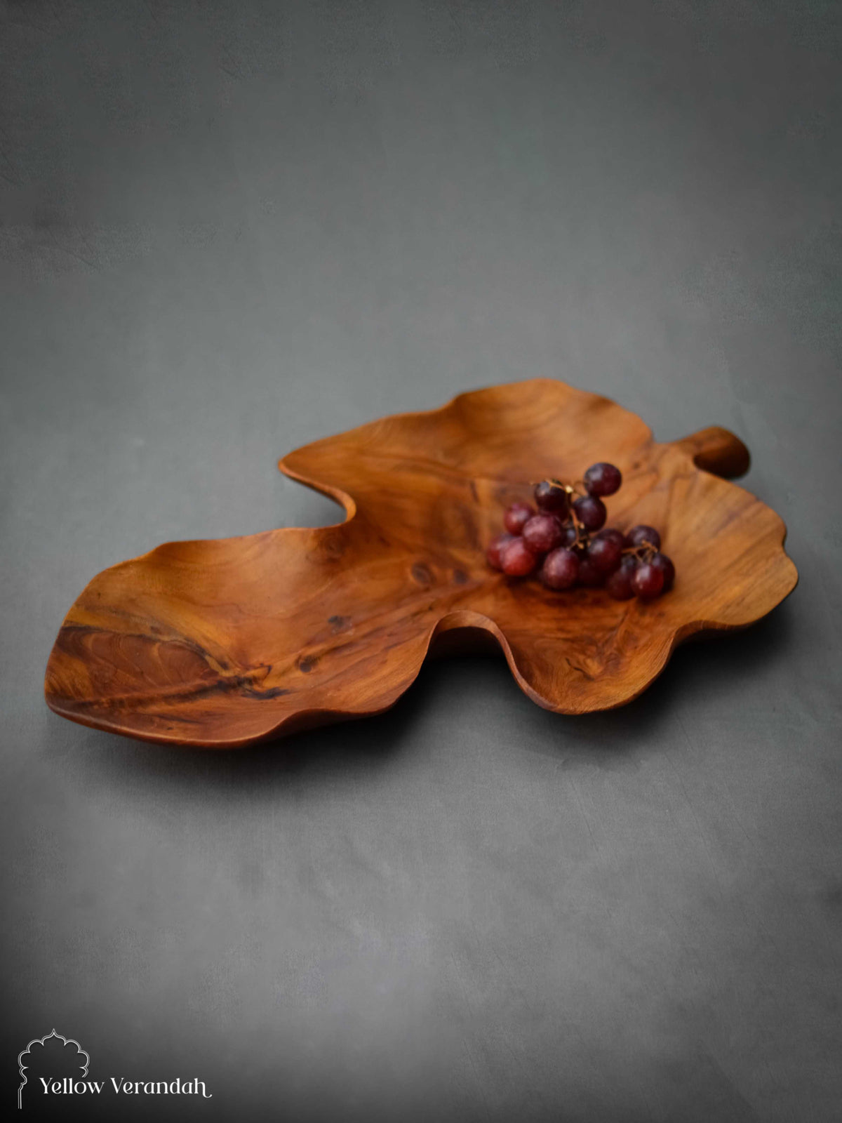 Teak Wood Leaf Shape Serving Platter - 17" long.