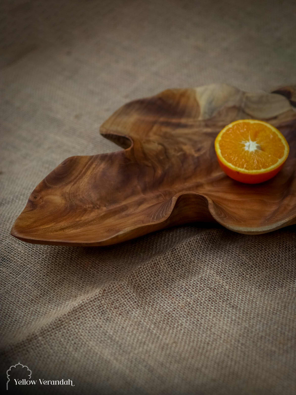 Bring nature inspired sustainable & conscious serving style to your table. This elegant wooden serving platter in leaf shape is made of Indonesian teak wood - a lovely way to treat your guests.