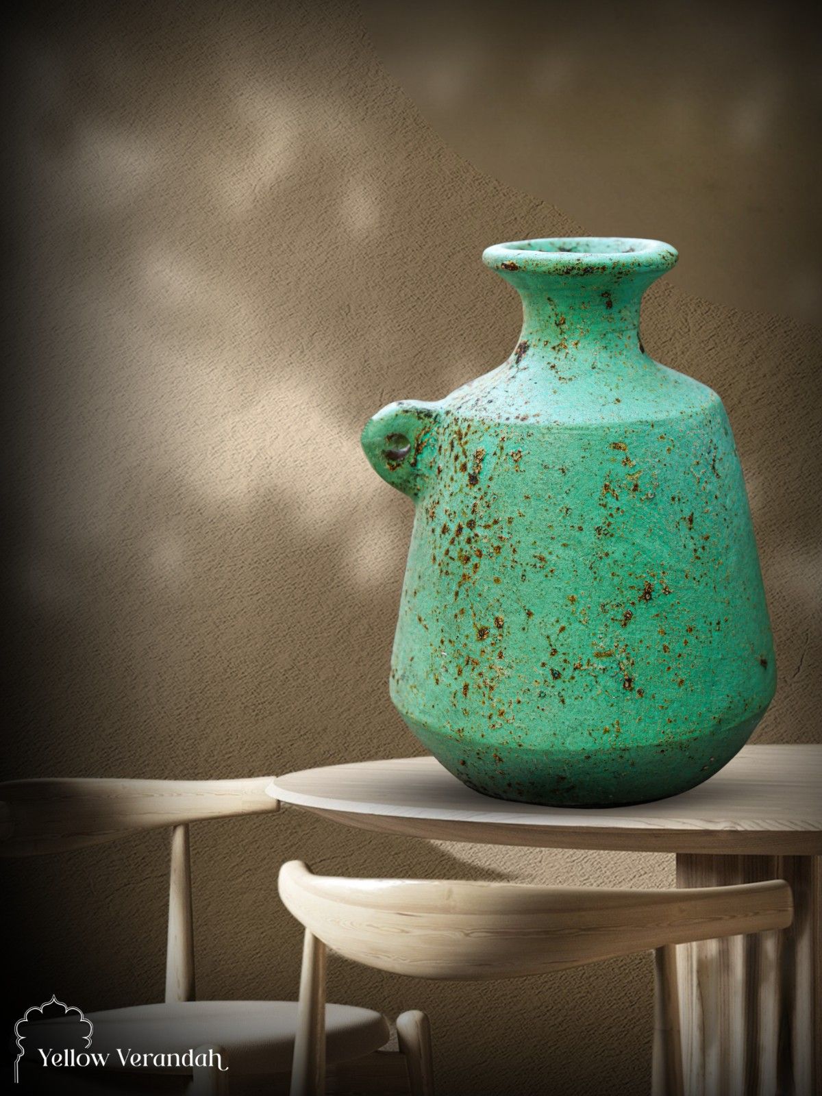 Turkish Terracotta Vase - Sea Green - Decorative Pot.
