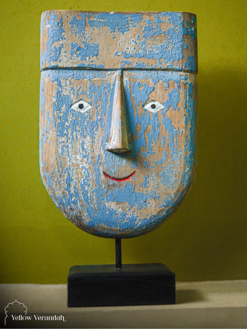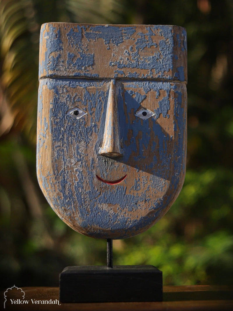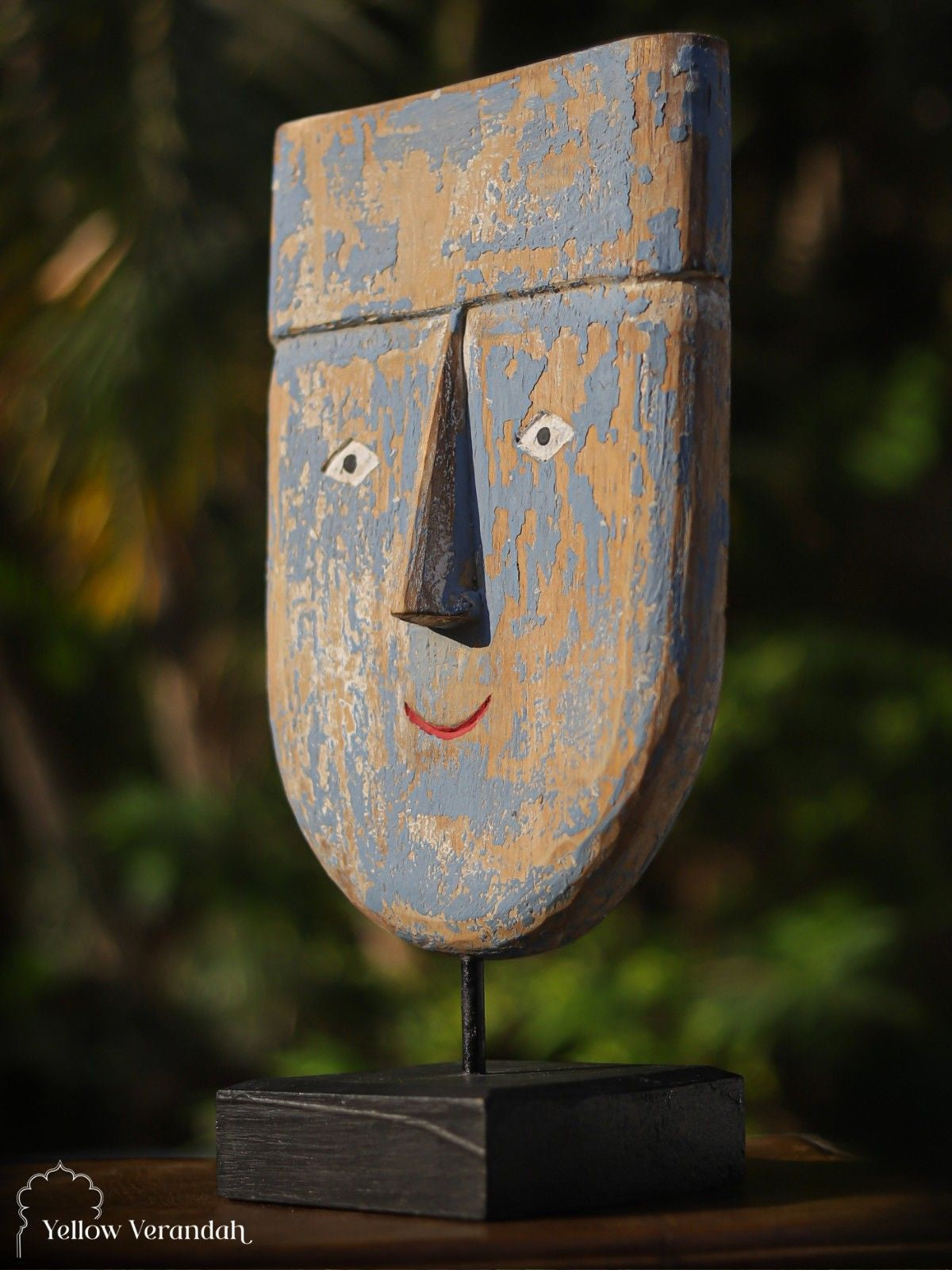 Talented artisans from Indonesia have handcrafted this unique human face table artefact that evokes Wabi Sabi modern aesthetics. This decorative table decor sports beautiful distressed texture & color that brings contemporary boho vibe in your living room.