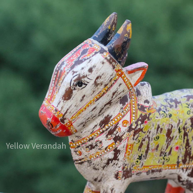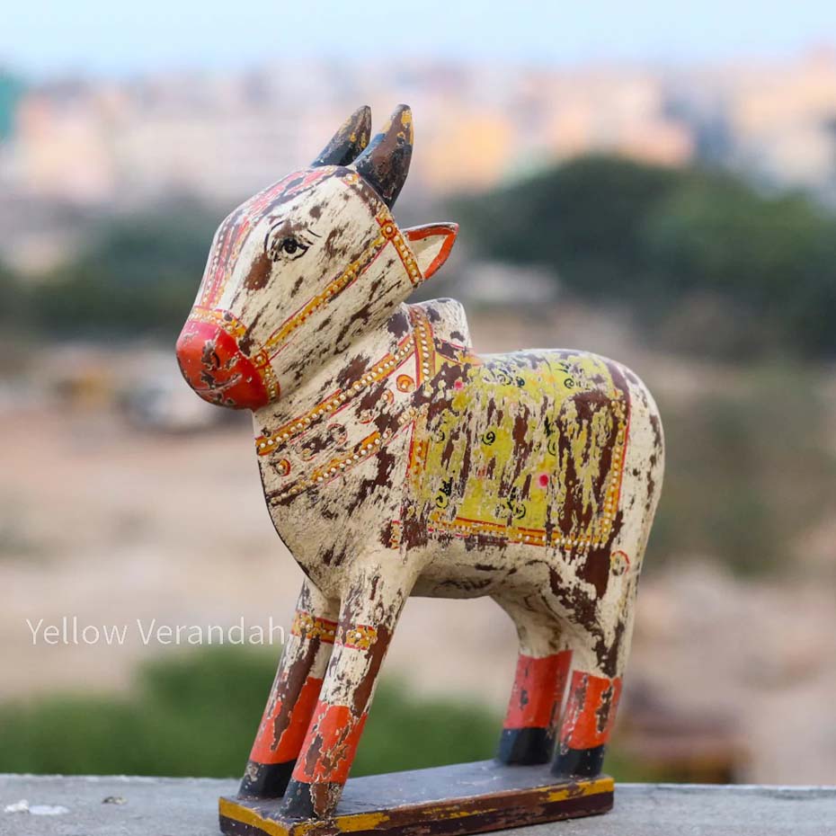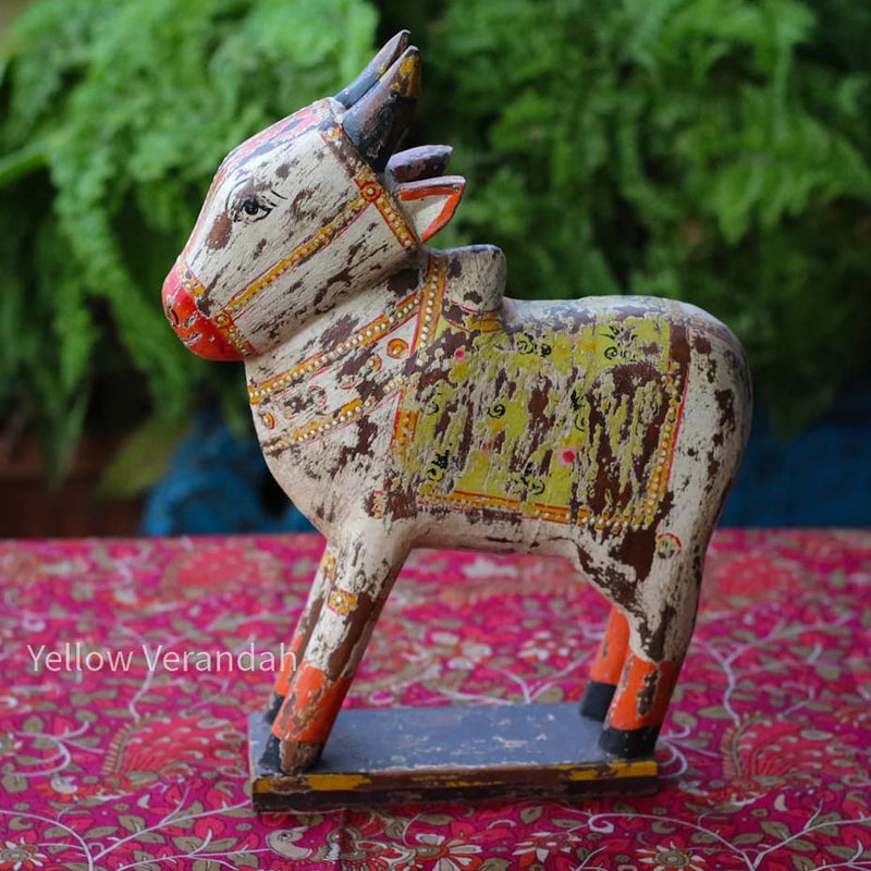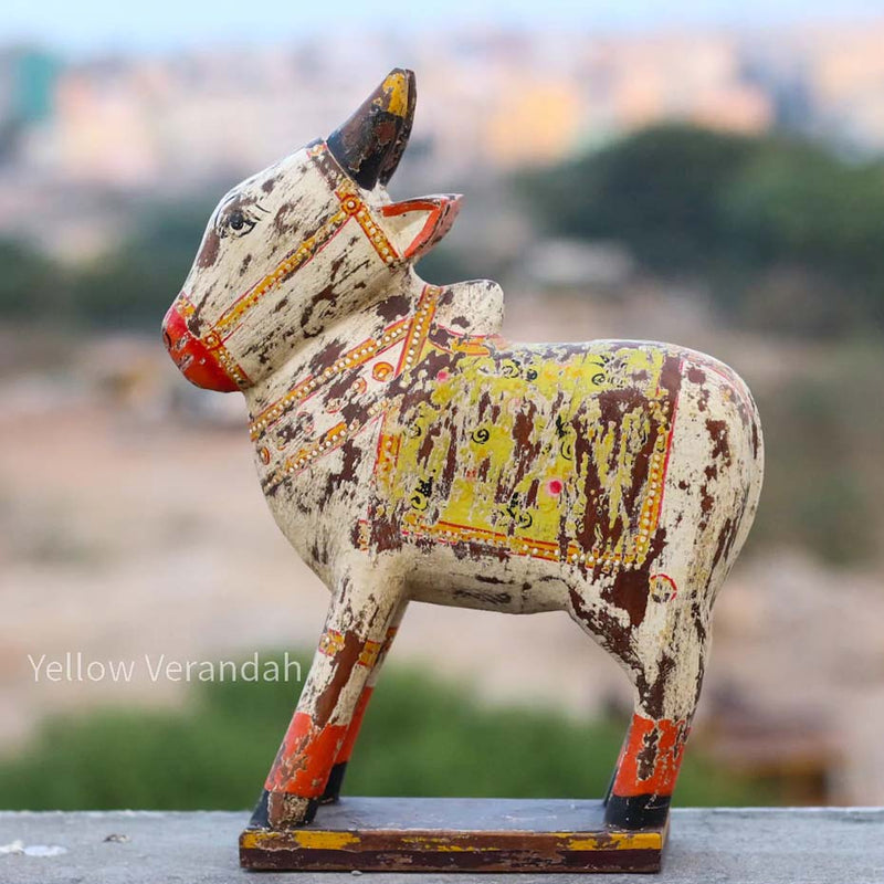 Handcrafted by local artisans, this beautiful Wooden Distressed Nandi embraces a cozy corner of your home.